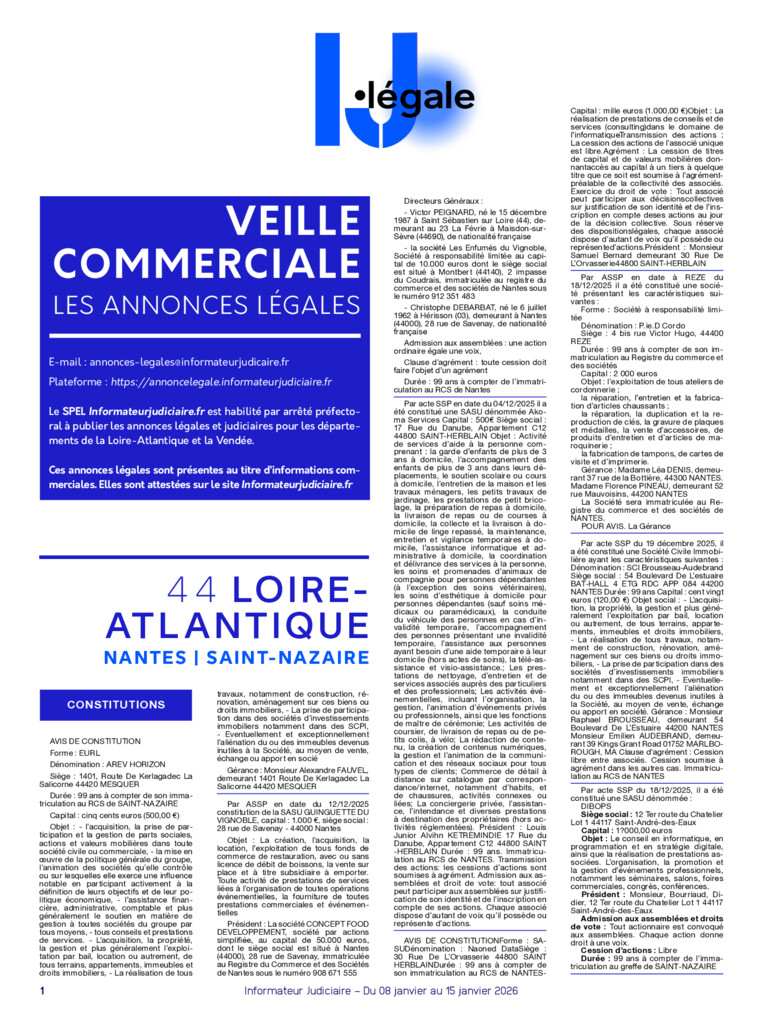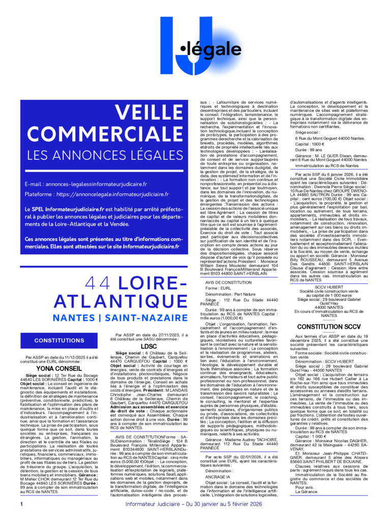 Annonces légales de la semaine départements 44 & 85